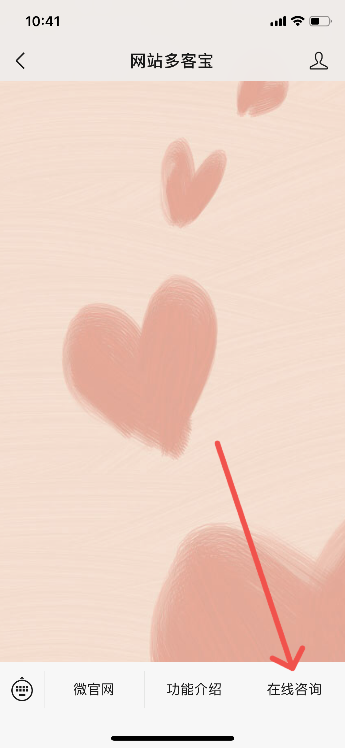 如上图所示,公众号内的右下角有一个在线咨询的按钮,点进去后,就可以随时与客服人员进行沟通。在线客服软件网站多客宝提供一切软件维护功能。