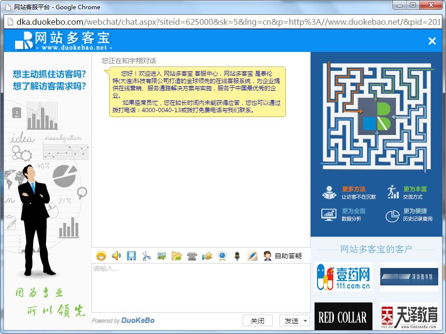电子商务、网络营销,都是充分利用网络的便利性和人们的观念性进行销售。同时可在线进行即时服务的销售方式也方便了买家和卖家的互通,从而创造了昨天的神话。即时通讯工具其实是上世纪就应运而生的一项产物,只不过人们只是为了实现他的线上即时交流功能,而没有过多的在管理上开发很多功能,随着电子商务模式的发展,越来越多的行业意识到网络是一个很好地销售平台,于是线上宣传开始了大规模的展开。可是,广告宣传、网站开发都是在被动的等待客户主动询价,人们还是没有物尽其用的利用好网络这个平台,依然刮风下雨的进行线下传统面对面营销,这样不仅占用了营销人员的大量的时间去寻找客户,还占用了公司的很多人力和成本,而即时通讯软件不仅实现了与客户线上交流的基本功能,还能主动出击的去抓住正在网站访问的访客和后台进行客户信息管理与分析,这样一来,你的网站就会充分利用起来,您就真的可以在互联网的世界也主动发现客户、拓展客户,真的做到了一个合格的电商行家。