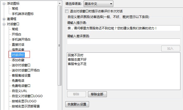 1.客服端新增--【系统-选项-对话窗口-对话评价】新增对话评价设置