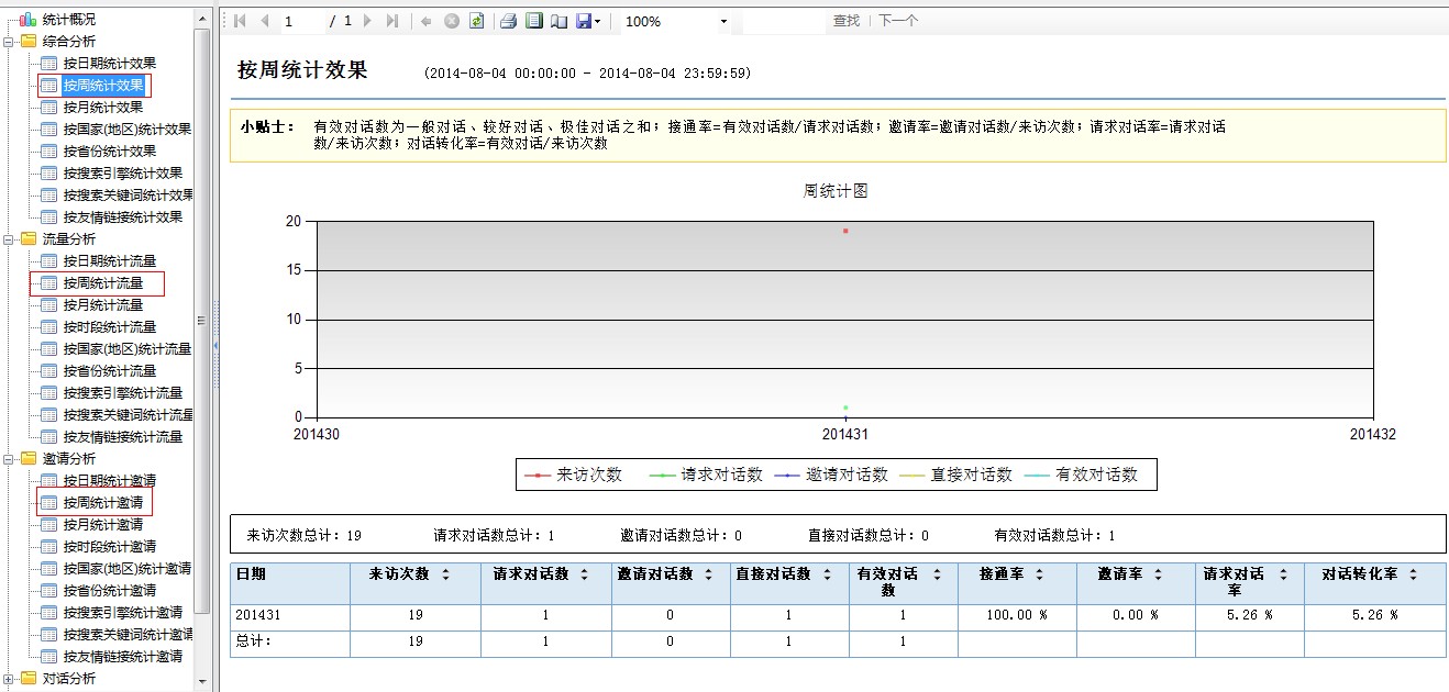 4.客服端新增--【数据分析】分别在综合分析、流量分析、邀请分析、对话分析中新增按周统计