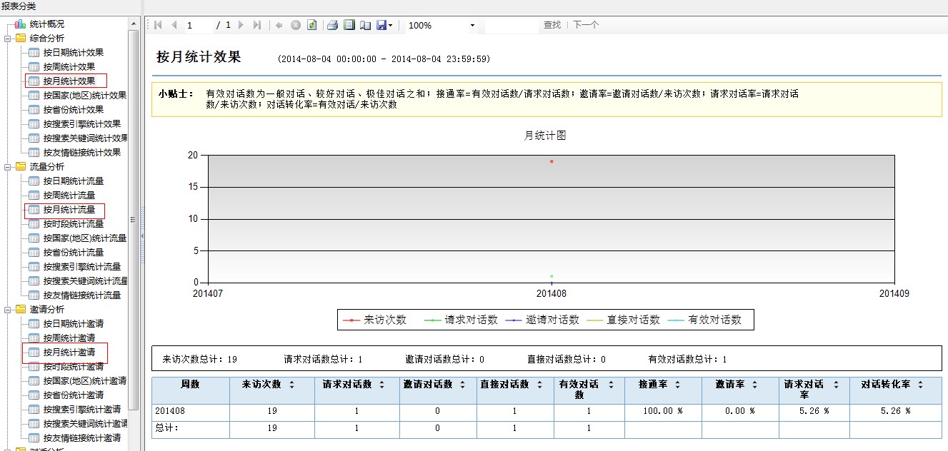 5.客服端新增--【数据分析】分别在综合分析、流量分析、邀请分析、对话分析中新增按月统计