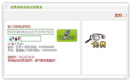 点击“免费呼叫”系统自动拨打输入的电话号码,