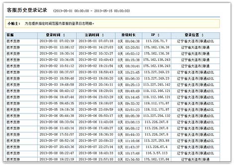 可以清楚的看到接待员登陆时间、离线时间及在线时长